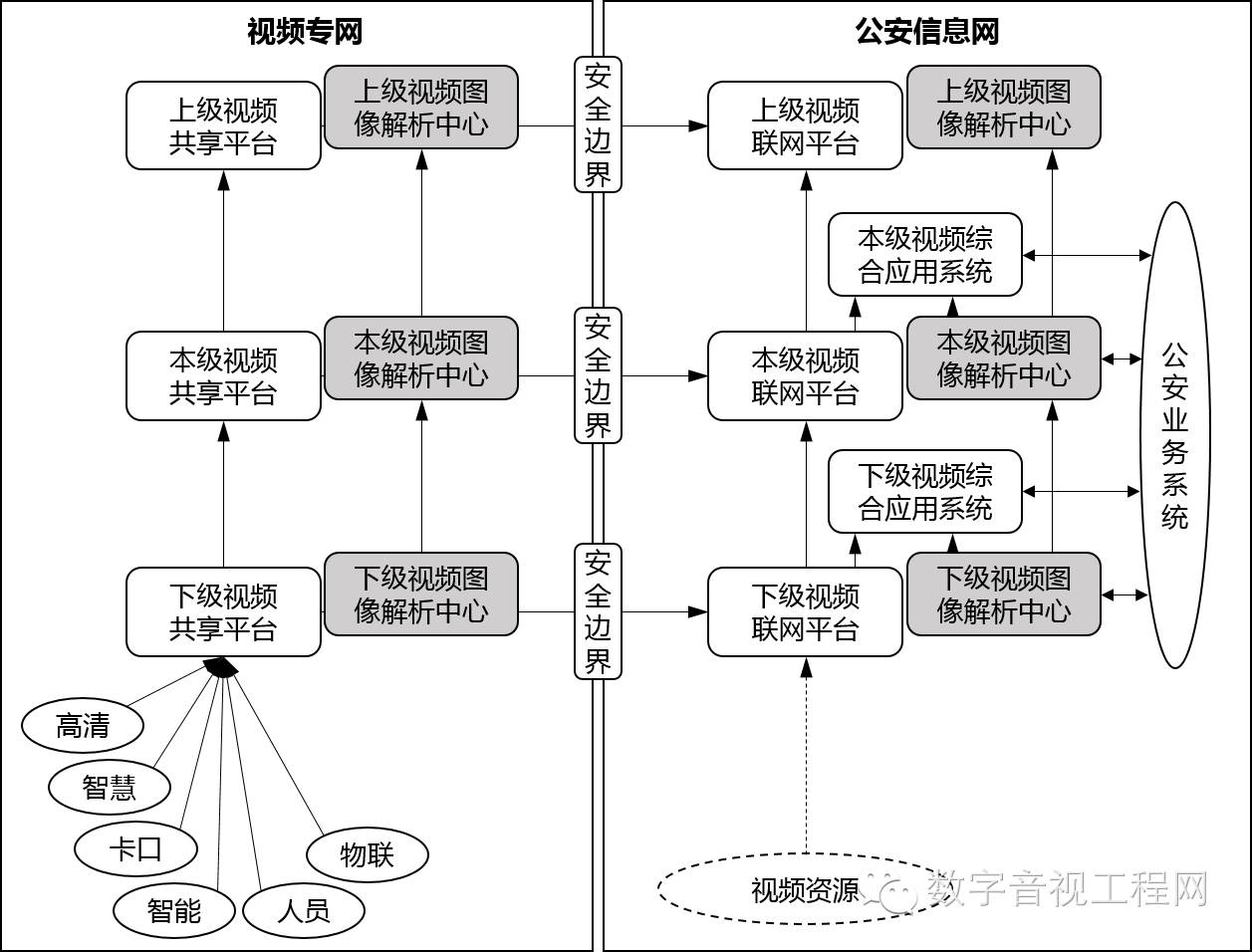 视频图像解析中心系统,依托于公安机关视频图像信息整合与共享工作,以公安视频专网和公安信息网为承载网,以公安视频图像信息共享平台和联网平台为基础,系统设计以“双网双中心、上下多层级”为核心架构,从“视图内容解析、解析数据存储、解析数据分析、解析中心管理”四个方面进行级联设计。视频图像解析中心系统主要由解析类系统、存储类系统、分析类系统和管理类系统组成,面向用户提供“端到端”的系统级解决方案。